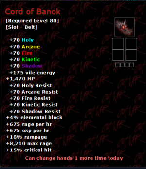 Cord of Banok drops from the god raid Banok, Demon of Insanity.